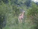 We were all awake at 5 a.m. and on the road by 6:15. Our mission this morning was to try a drive till 7:30 or so in a last ditch attempt to locate lions in the daytime. Within five minutes of leaving Berg-En-Dal we were on to giraffes nice and close to the road. After a short photo shoot, we continued down the road again towards the loop Andre wanted to try. click picture to enlarge As we were approaching our turn Andre noticed a line up of cars stopped on one corner. He thought it might be lions so he pulled into the fray. Sure enough, fifty yards into a clearing were two mature male lions lounging after what was probably a long had night chasing down game and providing for their families. Magnificent! Took our pictures and were heading south towards the Swaziland border before 7:30. click picture to enlarge As we crossed the Crocodile River, which forms the southern boundary of Kruger Park I got a great shot of a Nile crocodile and a couple of Egyptian geese down on a mud bank below the bridge. click picture to enlarge We crossed the border into Swaziland for our traverse back thru to South Africa shortly after 8 o'clock with no problems or issues. Swaziland is a rather hilly almost mountainous country. And you get a sense that the Swazis are quite hospitable and accommodating. As well, it is the only country in Africa that is an absolute monarchy with a king who exercises total power over the land and its subject peoples. The roads were in quite good repair and are used equally by people walking, cows and goats grazing alongside & frequently crossing and by vehicles. click picture to enlarge After passing thru the town of Pigg's Peak on Highway 1, we took a short side trip over the Maguga Dam. The Maguga Dam is a dam on the Komati River in Swaziland that is 115 metre's high and is located 11 kilometres south of Piggs Peak. From there it was down to the Ngwenya Glass Factory at Motshane where we joined Highway 3 east thru the capital of Mbabane. We stopped for breakfast at the glass factory. Lee and I made a couple of small purchases, after which it was back into the van to continue on. click picture to enlarge Once we passed thru the capital city we continued travelling though the kingdom of Swaziland. We continued on to Manzini, the largest town in Swaziland, and ran into a one-feather Swazi prince in the lineup at the Pick n Pay. The red feather is a symbol of a royal and his Majesty the King wears three red feathers as a crown. Princes wear up to three, normally on the side of the head. There was also a bar named Quatermain's, named after Allan Quatermain of King Solomon's Mines fame. A novel published in 1885, King Solomon's Mines tells of a search of an unexplored region of Africa by a group of adventurers led by Allan Quatermain for the missing brother of one of the party. The twin mountain peaks, Sheba's Breasts, were supposedly the site of the mine and are visible just east of Mbabane here in Swaziland. click picture to enlarge From there we turned onto Highway 8 that takes you down to the southern border. Along the way there was lots of timber, sugar cane, banana plantations and pineapple farms. We arrived at the southern border town Golela at around 3 p.m. Again, the border crossing was painless. Stamp the passports and we were through. click picture to enlarge Our destination for tonight was the Nkwazi Lodge in the Pongola Game Preserve in northern KwaZulu Natal province of South Africa. Our turn off the highway wasn't far from the border crossing. From the turn it was supposed to be a 20 minute drive on a gravel road, which took us 45 minutes because of all the game sightings along the way. click picture to enlarge We saw numerous impala, kudu, nyala, warthog, as well as 40 or more elephant in the distance on the shore of Lake Jozini which is formed by the Pongolapoort Dam. There were also lots of helmeted guineafowl, lilac-breasted rollers, marabou storks, white-backed vultures and a few crested francolin. click picture to enlarge We finally arrived at the lodge at 4 p.m., the exact time that Wendy had requested we arrive when we were discussing travel plans yesterday. The check-in was really pleasant. Prior to being shown to our thatched chalets we were given a bit of a tour. Now, this is the type of accommodation you think of when you think of travelling through Africa. click picture to enlarge While we were taking a little downtime prior to supper, Lee and I made the acquaintance of a lovely warthog who came to visit and said hello to a mother nyala and her fawn outside the door of our chalet. click picture to enlarge Lee showered and went over to the lounge at 6 p.m. I caught up on my notes, showered and joined our group a half an hour later for a drink before dinner. click picture to enlarge Dinner was ready at 7 in the dining room but before we could eat, one of the waiters performed a Zulu dance of some sort. Dinner was a set menu which started with homemade bread, a green pea soup, garden salad and carrot coleslaw. The hot dishes were maize and sauce, broccoli, potato wedges, carrots along with barbequed chicken, steak and kudu link sausage. We finished up with a kind of a fudge cake square by around 8:30. click picture to enlarge Afterwards, everyone was rather tired so it was off to bed early again. |