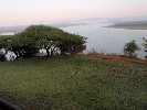 Another early morning as we were all up at 6 a.m. for a pontoon boat cruise on Lake Jozini at 7 o'clock. We met in front of the lobby, climbed into the vehicle that was waiting for us and enjoyed the 200 yard ride down a very steep hill to the boat launch. click picture to enlarge This manmade lake was formed by the construction of the Pongolapoort Dam on the Pongola River in 1973. And Lake Jozini is the only water in South Africa where you find the ferocious fighting tiger fish. Jozini is also the only lake in the country that has houseboats. click picture to enlarge In the water, along the shore and up into the hills teemed with every kind of wildlife. There were lots of hippo in the water and we spotted an abundance of giraffe, impala, zebra, blue wildebeest, reedbuck, waterbuck, warthogs, kudu and dozens of different bird species. Unfortunately, no crocs were to be found anywhere. click picture to enlarge A bit of a wind came up halfway through our two hour cruise but it wasn't too bad. Overall, the cruise was exceptional and well worth the price of admission (it was included in our tour cost). click picture to enlarge After the cruise it was back up the hill and into the dining room for a breakfast buffet. Once we had seated ourselves, our hosts surprised the girls with a rose, a poem on a parchment and a chocolate bar for Mother's Day. Hate to say it, but at this point, Mother's Day wasn't on our radar and this very thoughtful gesture sure bailed Harold and I out big time. click picture to enlarge We left the lodge at 10:30. Again, it was unfortunate we were on such a tight schedule as this place was magical. We all would have loved to stay at least another day. And, on the drive out we got our first good look at a Nyala bull. click picture to enlarge Once we were back on the pavement we travelled south on N2 towards our destination for the day, Durban. Along the way we stopped at the Zamimpilo Zulu Market for a short break. We made a couple of souvenir purchases and Andre bought some bananas and tangerines which were very tasty. click picture to enlarge We continued on and just north of Mtubatuba came upon a horrific single vehicle accident. It appeared that a light truck carrying several people in the box hit the ditch and overturned. The cab was crushed and there were bodies, luggage and debris everywhere alongside the road around the flipped truck. Several police cars and five or six ambulances and EMT's had already arrived and were trying to sort out the carnage. As we continued south several more ambulances and police cars raced past us on their way to the scene. Just past Mtubatuba we started to see the vegetated sand dunes towards St. Lucia on the coast. These are some of the highest dunes in the world. Just north of where the dunes start is Richards Bay, one of the largest coal and ore ports in the world. Also, they mine titanium under the sand dunes in the area. And this is where we caught our first glimpses of the Indian Ocean 100 km north of Durban. Along the way we had a quick pit stop at the Ultra City Truck Stop where they had a Steer's fast food place, Shell gas station and restrooms. click picture to enlarge We made good time and checked into the Fairlight Beach House in Umdloti just after 3 p.m. Umdloti is a resort town of 3,000 or so and is located a few miles north of Durban. The Fairlight is a five-star guesthouse right on the beach. On the way through town we made dinner reservations at the Bel Punto restaurant. After we got settled into our rooms we kicked back for a few hours, enjoyed the exceptional view of the Indian Ocean and I caught up on my notes. click picture to enlarge The Bel Punto is an Italian restaurant within walking distance and we were seated on the patio looking out over the ocean. We did have some difficulty reading the menu as it was now dark out, but managed to muddle thru the ordering process. The meal was very good with lamb chops for Harold, prawns for Wend and I and pork chops for Lee. click picture to enlarge After dinner, it was back to the Fairlight and everyone shut it down just after nine. |